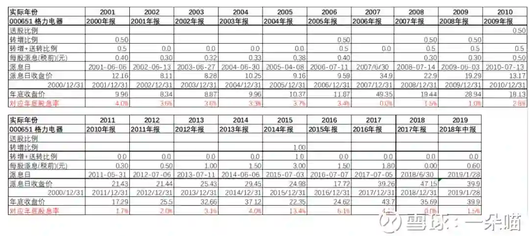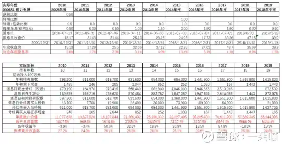 表3 格力电器2001年-2019年红利再投资实际情况: