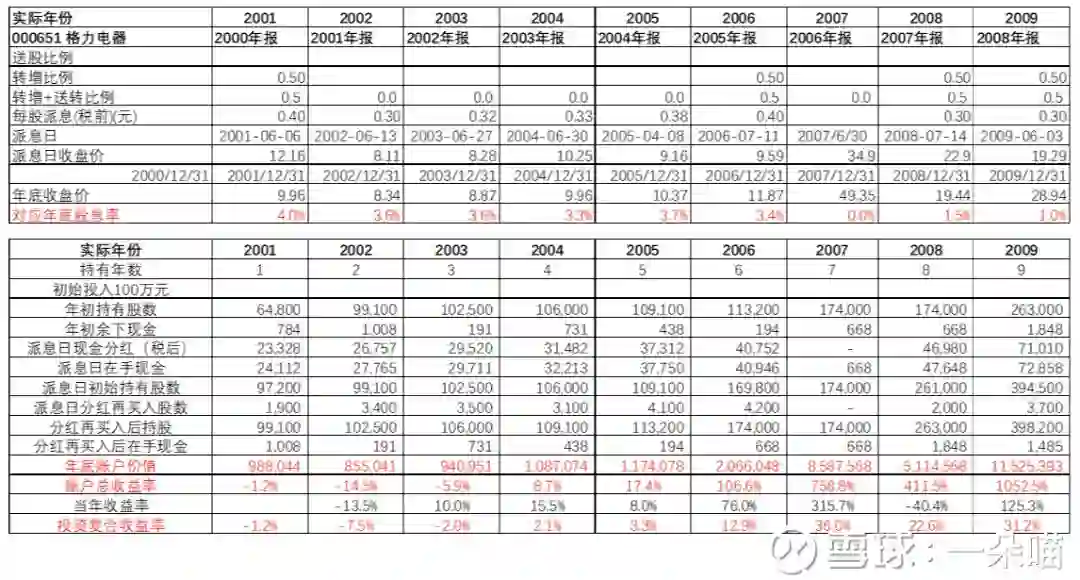 表5 大熊市下,格力电器2001年-2019年红利再投资情况推演: