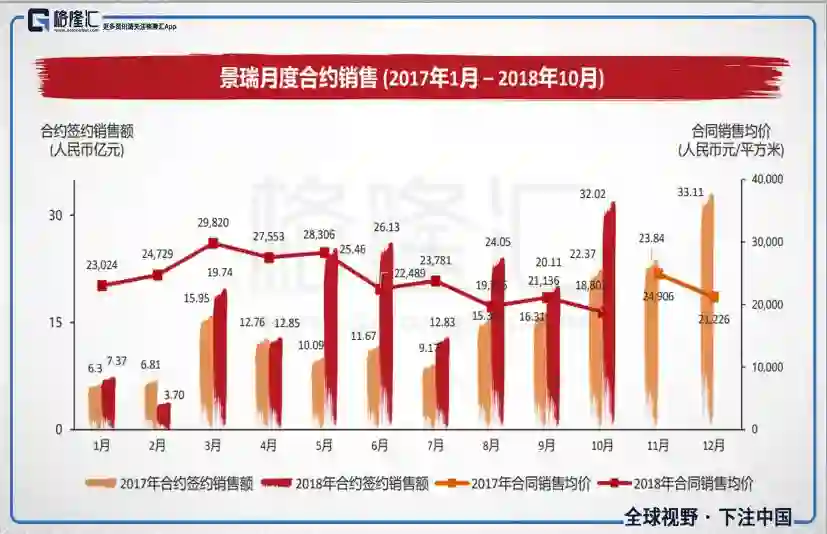 从公司最新销售数据来看,截至2018年10月31日止10个月,景瑞控股累计合约签约销售额约为184.26亿元,同比增45.34%;合同销售面积约为80.73万平米,合同销售均价约2.28万元/平米。