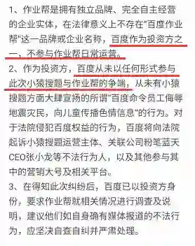 8月17日,百度,也就是“作业帮的爸爸”出来说话了。