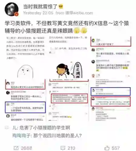 8月10日,中国教育网出现了一期视频节目,批评小猿搜题里面的跟帖,极不健康、少儿不宜。