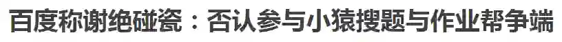 在题为《即使树大招风,依然谢绝碰瓷》的声明中,百度称,作业帮是拥有独立品牌、完全自主经营的企业实体,百度作为投资方之一,不参与作业帮日常运营。百度从未以任何形式参与此次小猿搜题与作业帮的争端。对于外界对“百度”品牌的肆意攻击无限,百度将运用法律武器维护权益。