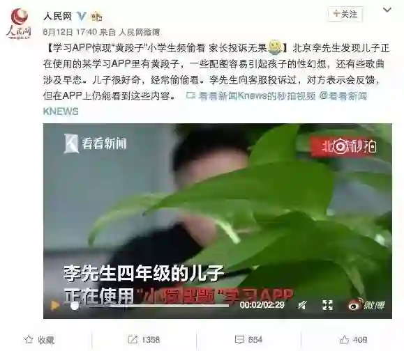 大致内容是某位儿子在上小学的“李先生”,因为儿子沉迷于观看小猿搜题上的涉黄内容学习态度出现了问题。