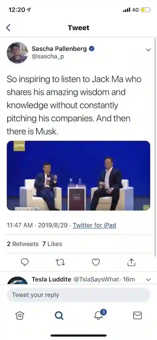 有网友认为,马云是一个爱地球的理想主义者,而马斯克则像一个逃避解决人类和地球问题的幻想主义者。