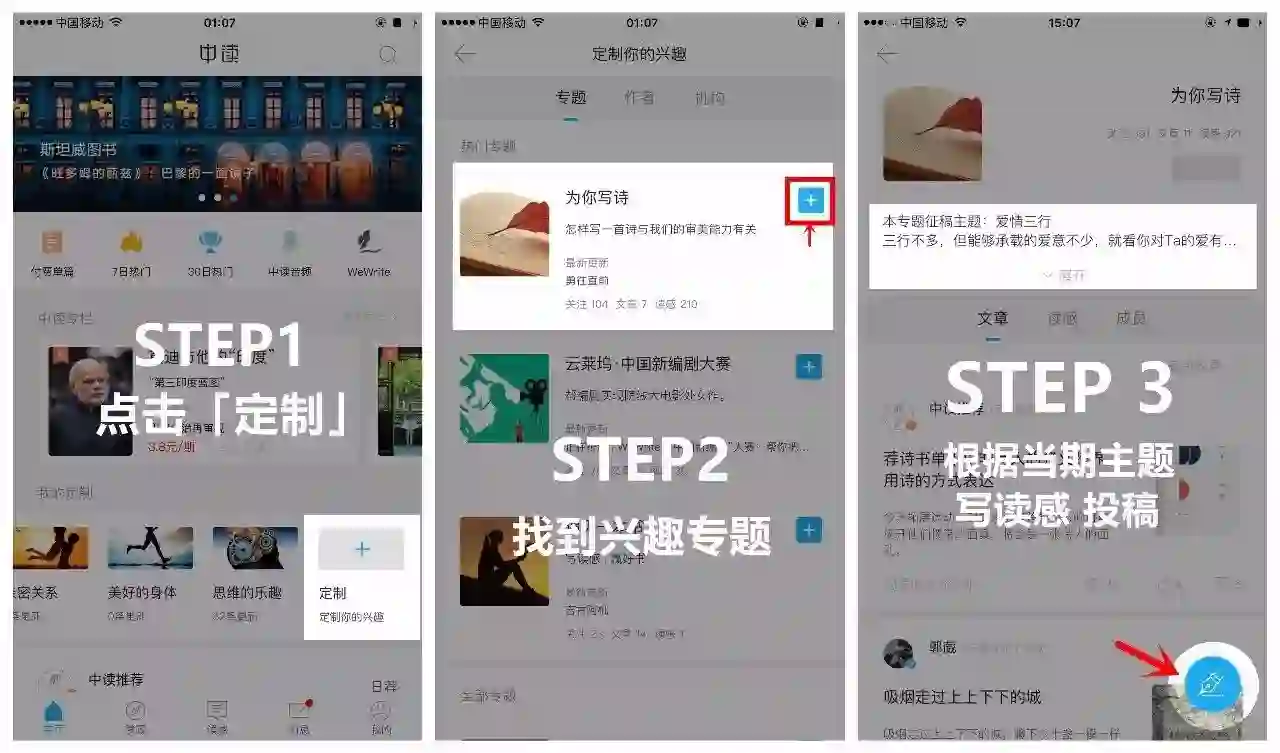 1.在中读APP首页定制“为你写诗”专题;
