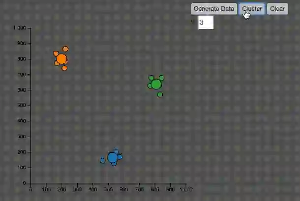 2、由于中心点的初始位置是随机的,有可能并不能正确分类,大家可以在我的Codepen中尝试不同的数据