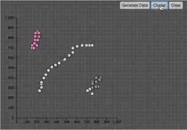 2、遍历该核心点的邻域内的所有核心点(因为边界点是无法扩充的),寻找与这些数据点密度相连的点,直到没有可以扩充的数据点为止。最后聚类成的簇的边界节点都是非核心数据点。