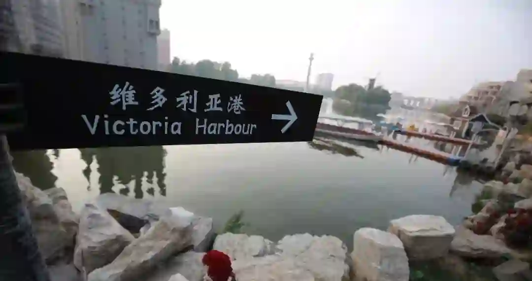停满小黄鸭塑料脚蹬船的维多利亚港——