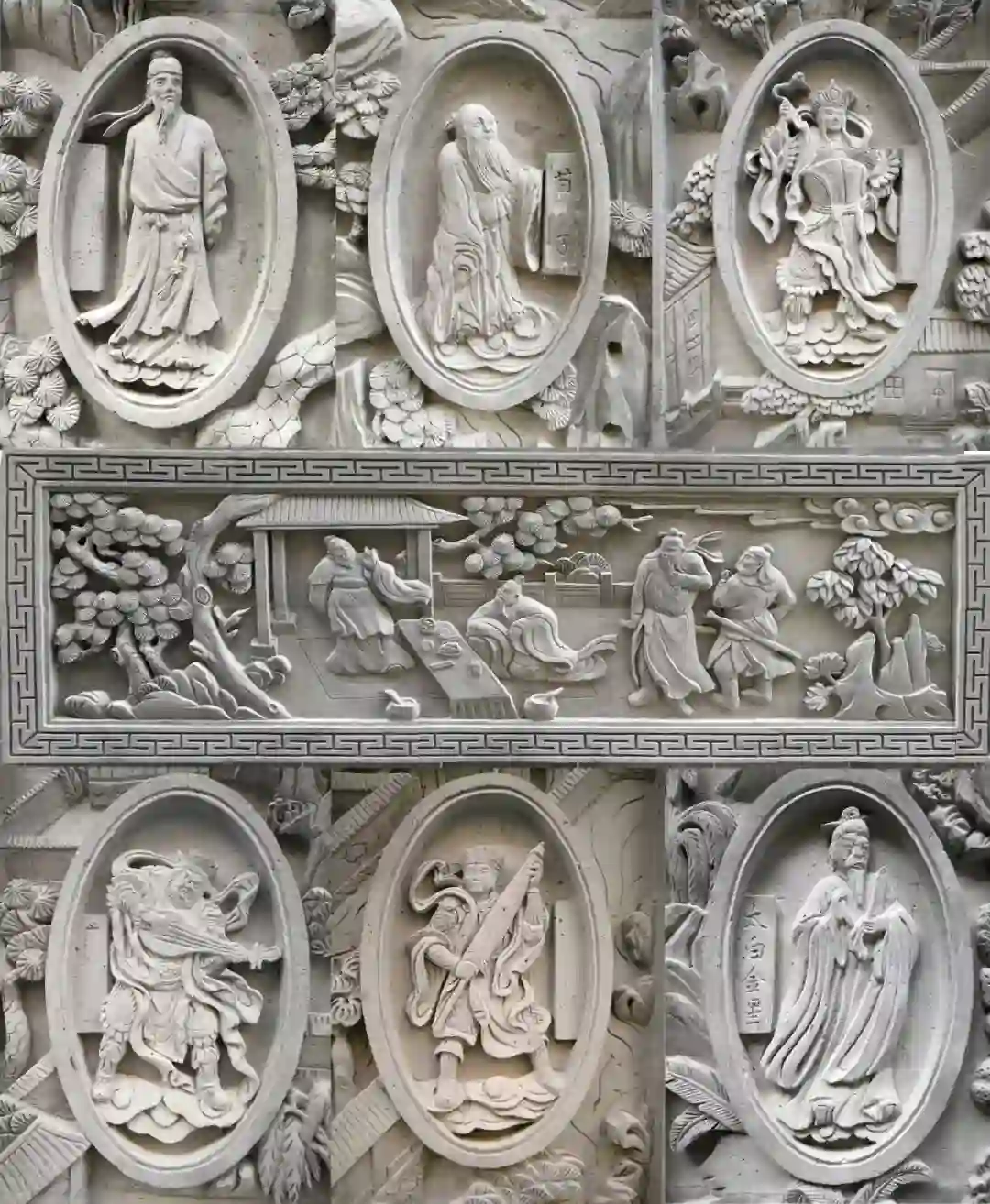 城中建筑的外墙上贴满了古代文人和神话人物的镂空小画像,所有柱子的柱身上一定是攀龙附凤金光闪闪,在城里走一圈,眼睛就被晃到流泪。