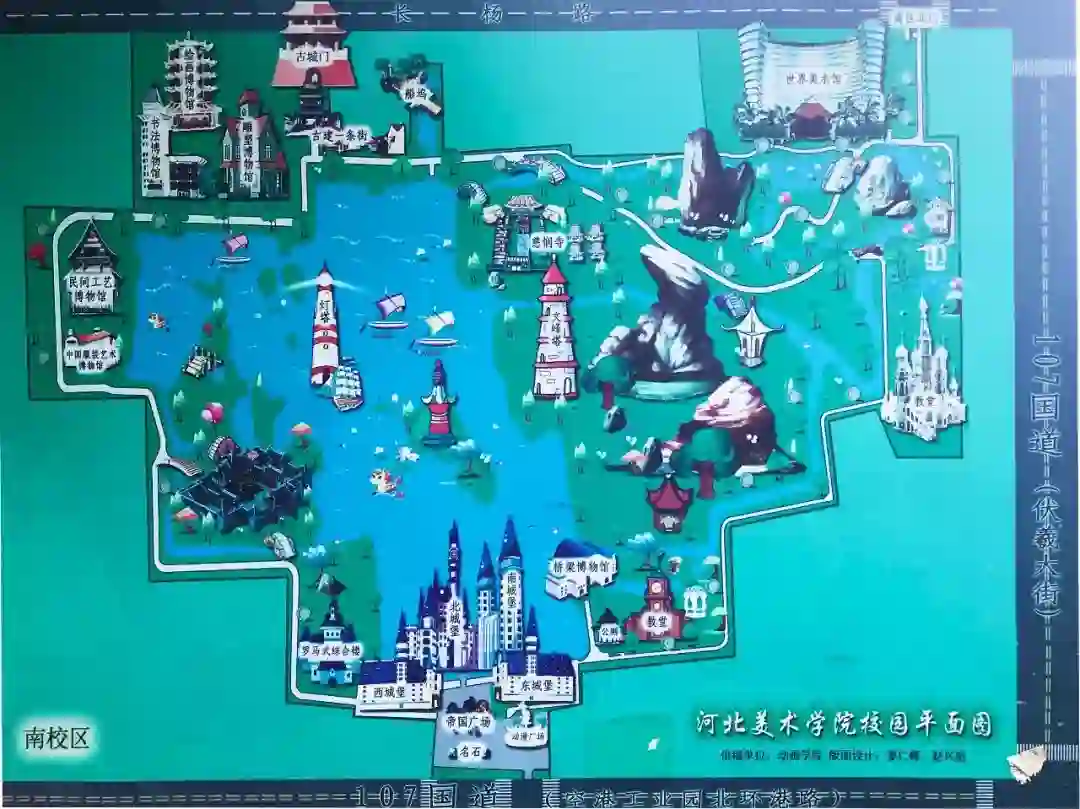 它正在修建的还包括世界美术馆、雕塑博物馆、绘画博物馆、书法博物馆、民间工艺博物馆、中国服装艺术博物馆……这也是我们第一次见到一所学校的地图像游乐场藏宝图。