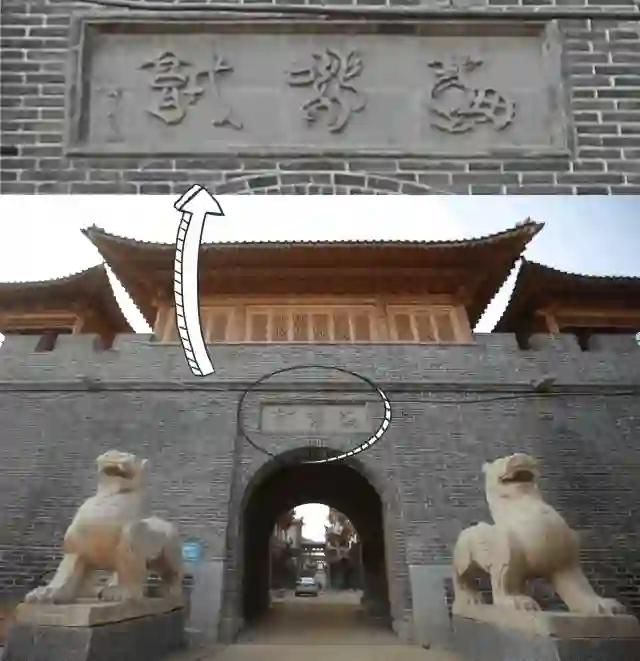站在中式古城前的我们再次感到了自己的无知和渺小,因为城门上写的三个字,我们一个也不认识……只好再次求助工人师傅,师傅给出的答案是——鸡鸣城。原来如此,怪不得城门上还真的画了一只鸡。