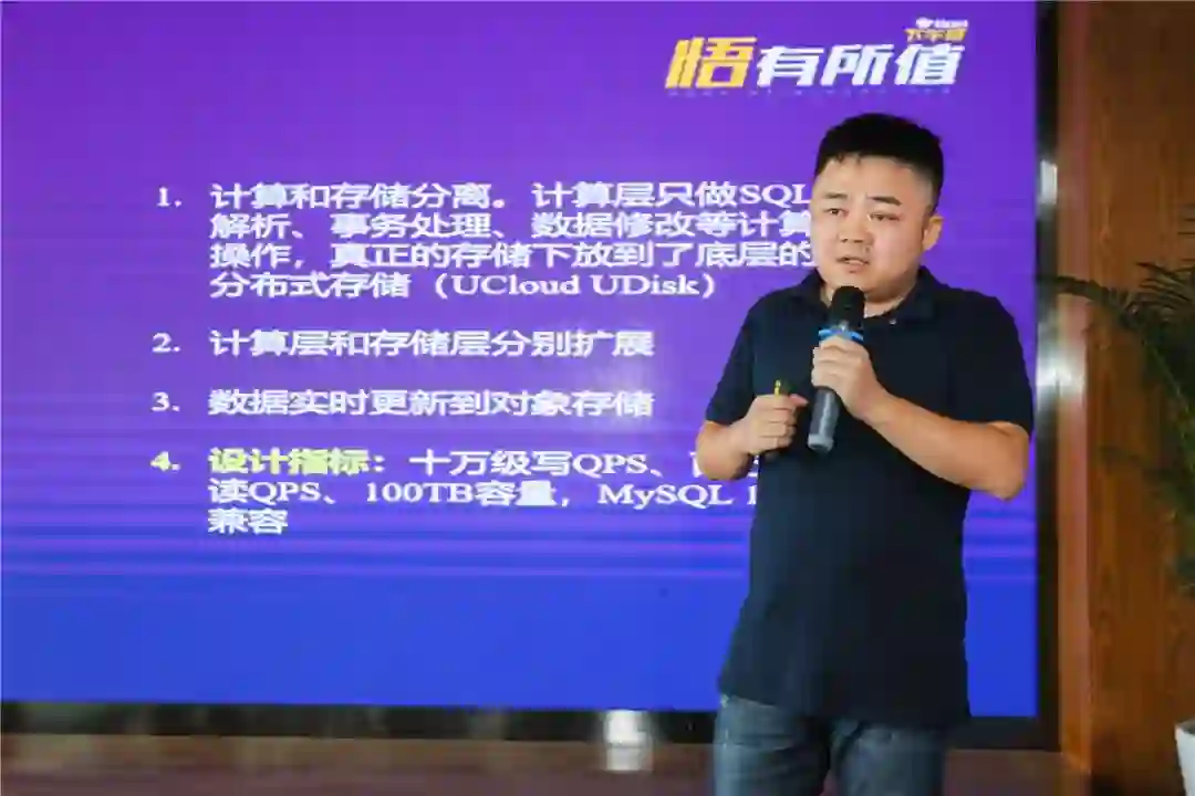 第二位进行主题演讲的嘉宾是 UCloud 资深数据库研发工程师刘坚君。他的分享题目是「新一代公有云分布式数据库——UCloud Exodus」。他认为,在公有云数据库 1.0 的基础上,云数据库 2.0 重新思考了用户需求痛点,基于公有云的进化能力创造出了全新价值,而 UCloud Exodus 将会是云数据库 2.0 时代的重要产品,现场他对其能力进行了详细的介绍。
