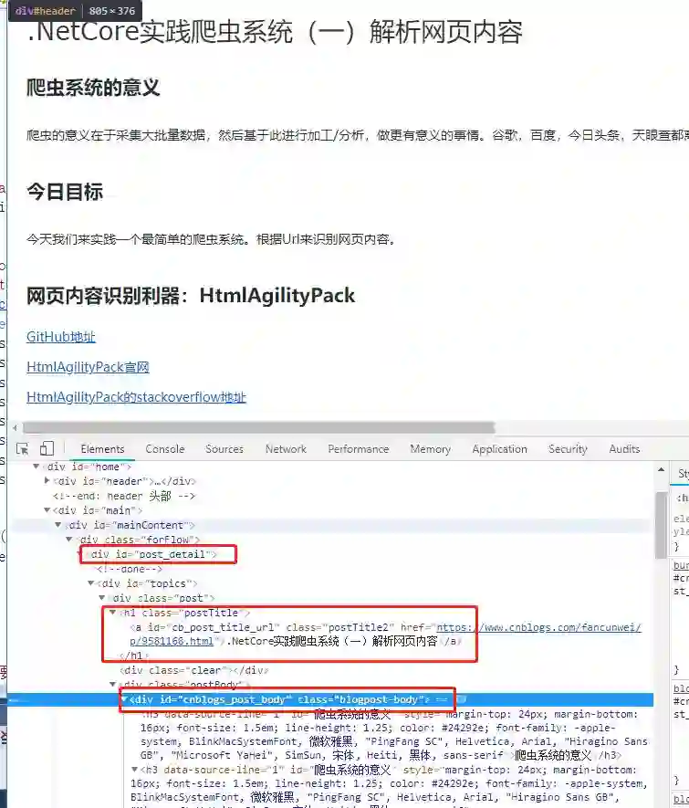我们以上篇文章为例,获取文章详情。 主要结点是标题,内容。其他额外属性暂不处理。