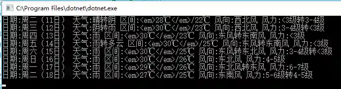 还有个问题,那个晴天雨天的图片,是按样式显示的。我们虽然能抓到html,但样式还未考虑,,HtmlAgilityPack应该有个从WebBrowser获取网页的,似乎能支持样式。本篇文章先跳过这个问题,以后再细究。