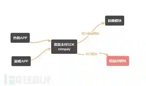 “隐流者”将后门代码植入到名为cmnpay的恶意支付插件中,任何使用该支付插件的应用都可执行相应的恶意代码.目前该恶意支付插件主要的使用者是色情刚需应用和部分的游戏应用.