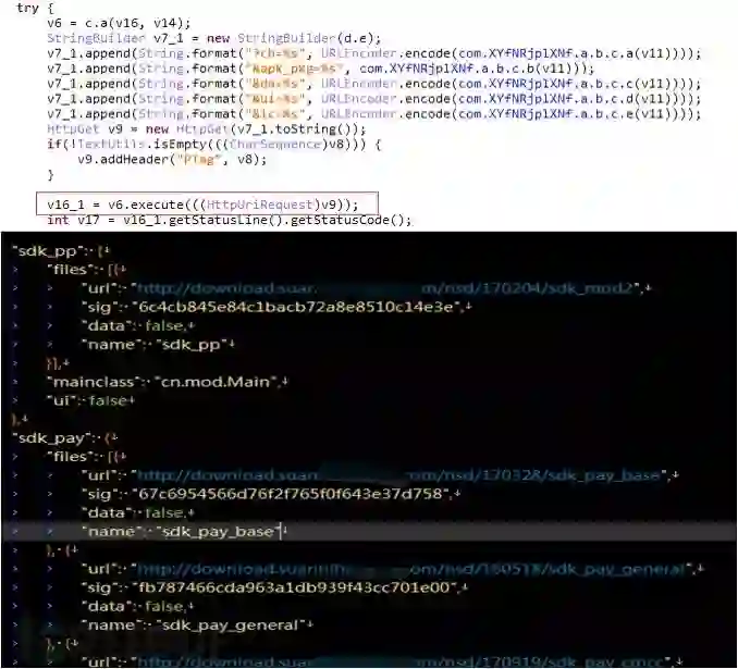 3.3 其中配置为sdk_pp的dex子包sdk_mod2会进一步从云端下载刷量相关的几个子包