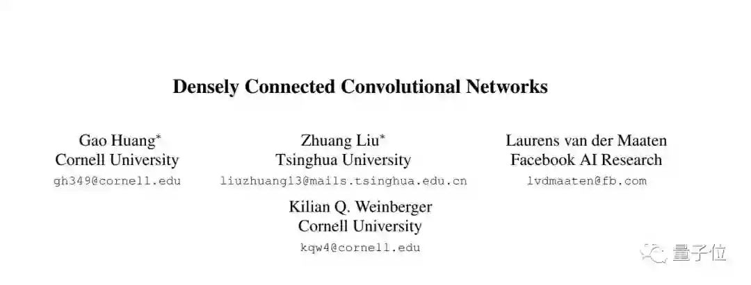 一篇是Densely Connected Convolutional Networks,作者来自清华大学、康奈尔大学和Facebook等。