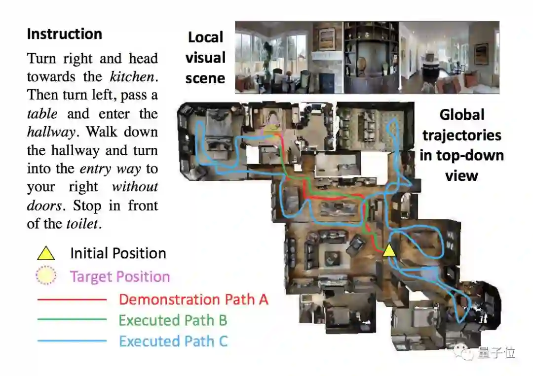 而现实世界的具体任务总是略显艰难,下图显示的就是一个VLN任务。