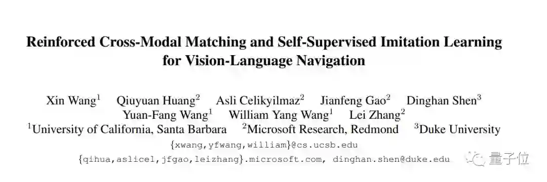 这篇论文,来自加州大学圣巴巴拉分校(UCSB)和微软研究院,题为Reinforced Cross-Modal Matching and Self-Supervised Imitation Learning for Vision-Language Navigation。