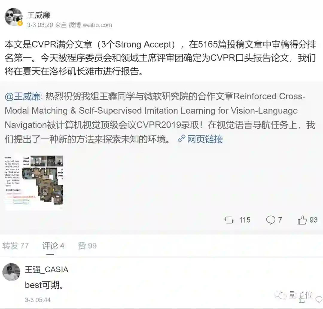 最后,CVPR 2019 将于6月16日-6月20日于洛杉矶长滩市举办,王鑫同学的这篇满分论文,能否获得最佳论文?届时将会揭晓。