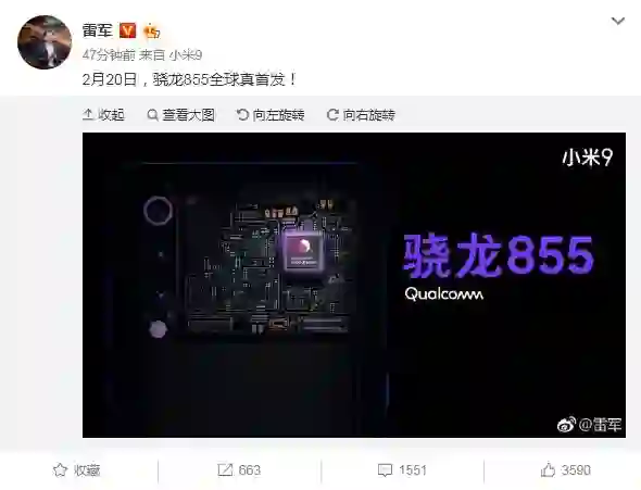 雷军今天在微博上透露,即将发布的小米9将搭载高通最新旗舰芯片骁龙855,并强调是“真·首发”。据了解,小米9将搭载高通骁龙855芯片。而骁龙855是800系列近年来最大幅度的一次升级。