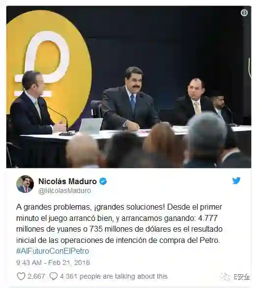 周三,委内瑞拉总统Nicolas Maduro发推文表示,新的加密货币已经筹集了7.35亿美元。伊朗和委内瑞拉都是石油输出国组织(OPEC))的成员,所以如果伊朗在它最终获得批准和开发之后,也可能以1桶原油作为实物抵押。