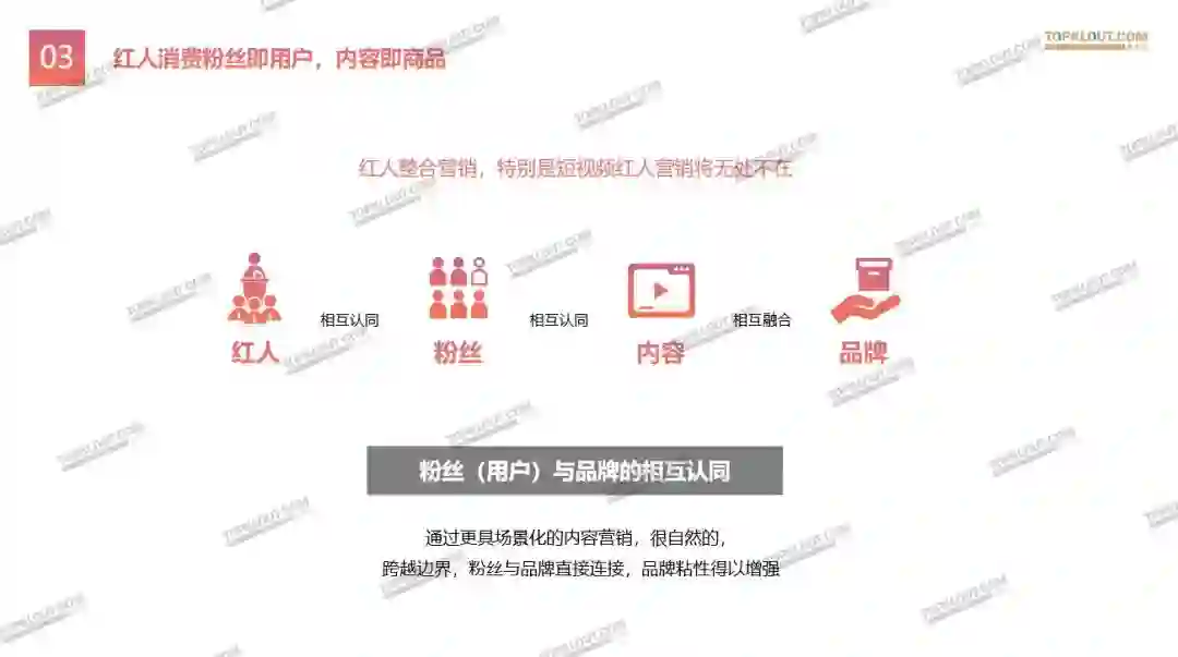 在红人营销的实际过程中,粉丝通过红人的推荐购买产品,表示粉丝对于红人本身及所输出的内容、所推荐产品的认同。