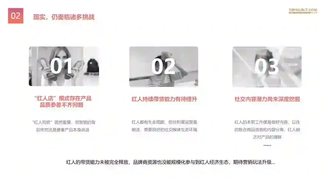 总体来说,红人的带货能力还尚未被完全释放,红人经济在专业化和系统化的内容营销策方面还略显欠缺;而品牌商资源也还未能规模化地参与到红人经济生态中来,市场仍需要有更多更加新奇、更加好玩营销玩法的出现。