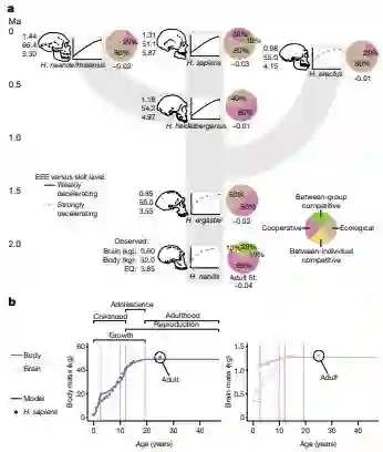 根据英国圣安德鲁斯大学的Mauricio González-Forero和Andy Gardner开发的一个新的预测模型,人脑大小的演化响应了大量不同因素,其中60%是生态的,30%是合作相关的,10%是群体竞争相关的。个体之间的竞争相对不那么重要。以上发现值得深思,因为它意味着社会复杂性更有可能是人类形成较大脑袋的结果而非原因,而且人类本性更有可能源自生态上的问题求解和累积文化演变,而非社会操纵。