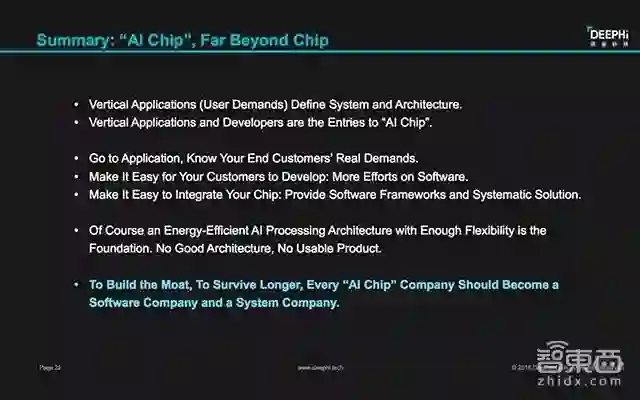 想要构建起产品的护城河,还有一个重要的点就是增加产品的不可替代性?对此姚颂也分享了自己的观点,他认为有五点需要AI芯片研发公司注意:1、在芯片设计时候,明确知道最终用户的需求;2、缩短开发周期,将芯片开发的难度降到最低;3、将芯片集成到系统中,使其运行更加简单;4、尽可能减少第三方的协作5、为用户提供更多的参考设计。