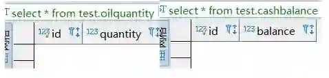 上次讲飙车,这次我们讲,去加油站加油,加油这个过程呢,存在一个事物操作,那就是,加油站必须给我加足够的油,我才给他付钱,有点像银行转账,那么引申出2张表,汽车油量表(oilQuantity)和现金余额表(cashBalance),对应的表结构和实体类如下,都比较简单,除了主键id,oilQuantity表只有一个油量quantity字段,cashBalance表只有一个余额balance字段,数据库使用的是mysql,实体类的注解TableAttribute使用的命名空间是System.ComponentModel.DataAnnotations.Schema。
