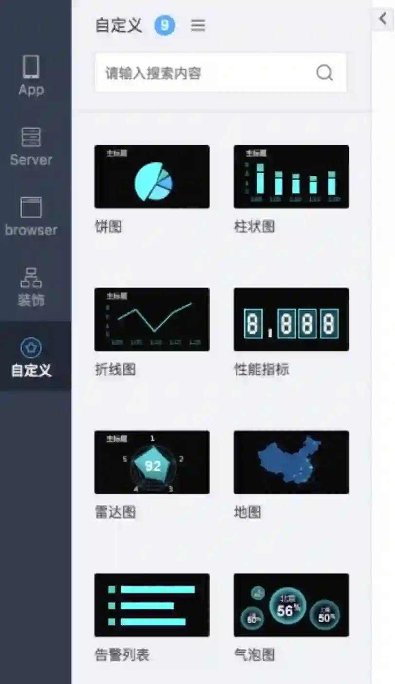 之后就进入到App大屏配置界面,这里提供自定义底图和多个模板的选择