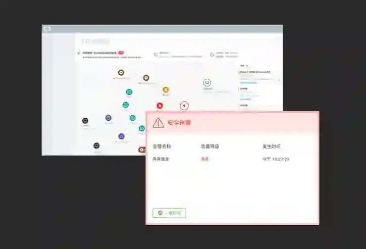 由于云上数据天然融合,阿里云安全中心将各个产品进行深度整合,基于阿里云的深度学习能力、海量数据以及强大的算力优势,实现了威胁告警、攻击事件的实时检测和自动化关联分析,从而挖掘出经过伪装的潜在威胁,大大降低了人力成本和时间成本,让黑客、挂马后门程序无所遁行。
