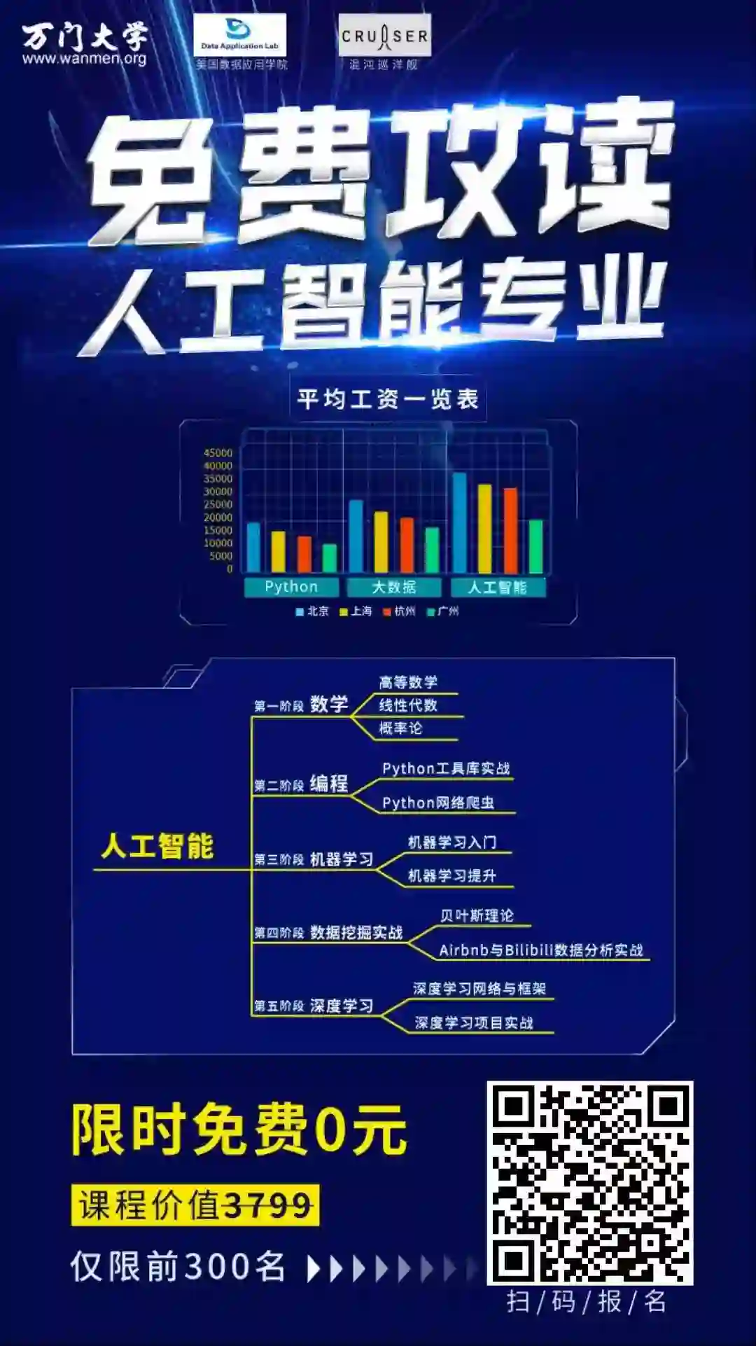 如果你想投入 AI 的怀抱,但却苦于不知如何下手。而当你准备自学机器学习和深度学习时,又被外面那些贵的要命的培训课程吓得不行时,你还可以选择成为本次万门大学人工智能专业的学员。
