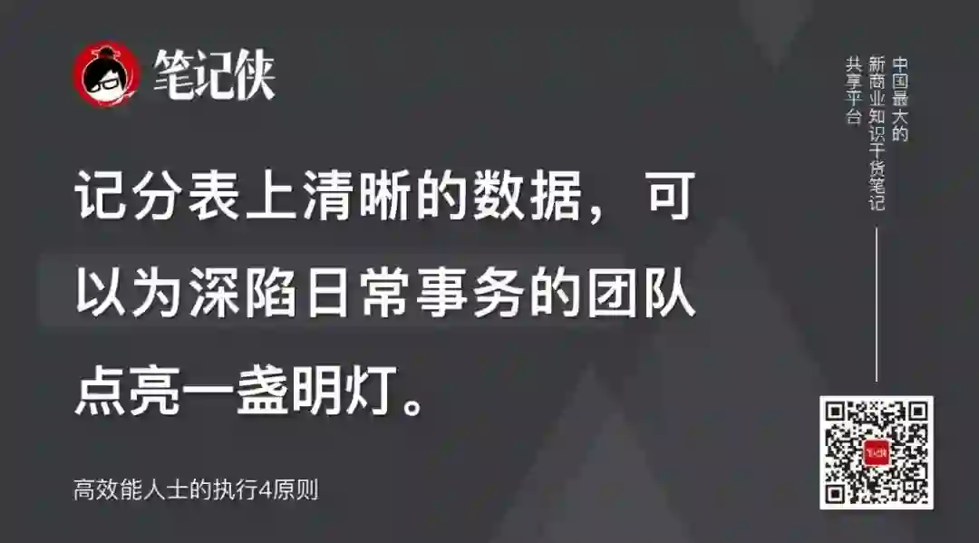 将团队要完成的引领性指标和滞后性指标全部转换为看得见、摸得着的量化成绩,坚持激励性记分表。