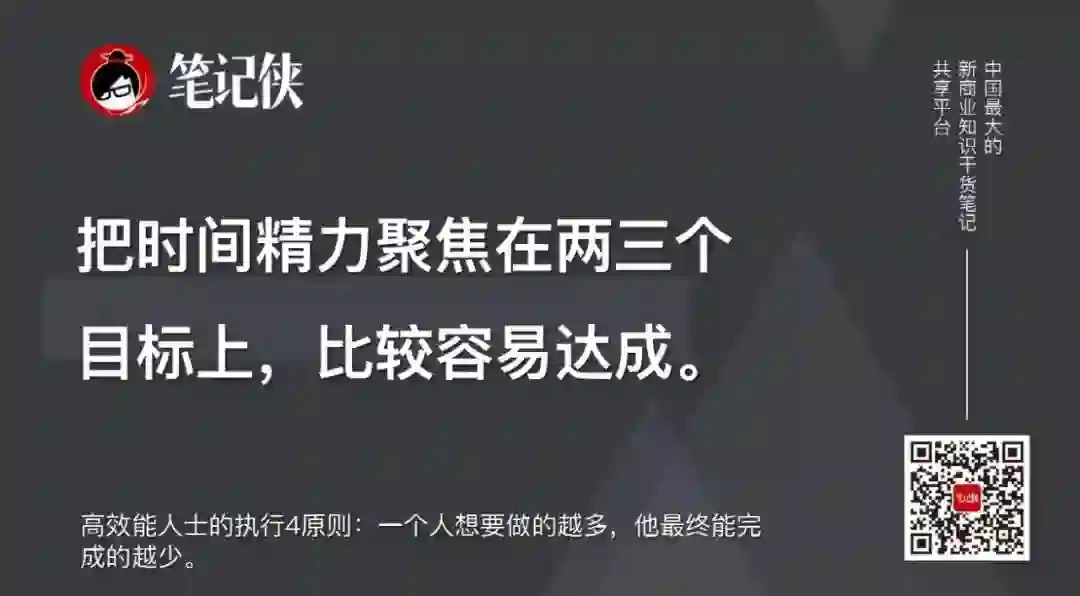 如果你在日常事务之外,把时间精力聚焦在两三个目标上,最终结果是,这几个目标比较容易达成。