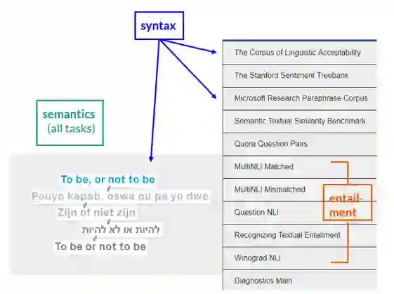 最近,神经网络在NLP中的作用越来越重要,在上面列出的一些任务中,神经网络是需要不同的知识和能力。在翻译任务中,需要翻译的语句需要由深度语言模型用另外一种语法去表达语义信息,这表明模型需要具有在不同语言中应用语法的知识。而语言的可接收性任务中则同样面对翻译问题中的语句通顺问题。同样涉及到需要不同的语法去表达语义信息的还有Paraphrase任务。上述任务共同包含的能力需求是识别语义的前后包含关系,例如前一句有没有包含第二句话的条件。模型还应该具有常识判断能力。例如:大象不能放到冰箱里面,因为它太大了,这个它指的是大象还是冰箱。而模型要想正确的理解“它”是大象还是冰箱,就必须知道现实生活中大象和冰箱的大小概念,这样才能正确理解是大象太大了。而相反的语句,大象不能放到冰箱里,因为它太小了,模型则能够理解是冰箱太小了。另外在做任务时,神经模型还需要理解语义信息,例如 Quora Question Pairs任务中,需要判断两个问题是否在提问相同的问题。值得考虑的一点是,在这些任务中神经模型能够出色的完成任务,这意味这它们应该具有很多相关知识。因此需要关注它们具有多少知识,如果它们具有这些知识,它们是从什么时候开始学会这些知识的。它们对于这些知识的储存方式是不是储存在一部分的单元里面,如果是的话我们能不能把这些单元提取出来,或者改进其他的单元。而知道这些知识的储存位置对于如何设计更好的模型提供了帮助。探究这个问题的方法是使用诊断探针。在2016年的时候,Ettinger 在文章《Probing for semantic evidence of composition by means of simple classification tasks》中提出了探针诊断。他们设计的方法是使用分类器,分类器算法的输入是句子的表征,输出的是语言任务,而使用者只需要手动指定一些语言任务,然后让分类器去学习。如果分类器能很容易学会,即获得很高的正确率或很低的交叉熵损失函数,就说明表征中有很多很容易解码的信息。Bengio在文章《Understanding intermediate layers using linear classifier probes》中提出,对诊断探针的分类器的疑问可以概括为,在模型的阵列当中是否包含这块信息。因为在一个深度模型当中,从低层到高层所包含的信息是减少的,这主要因为信息处理的不平等,模型会对信息做一些处理,导致信息的损失,但是会尽量保留有用信息。所以越往高层走,任务相关的信息占的比例会越来越高的,会越来越容易解码。 2