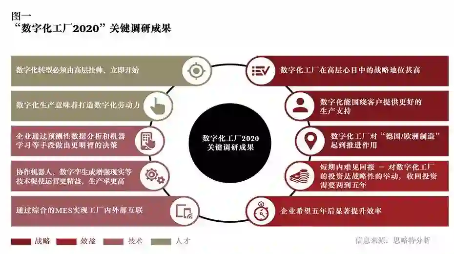 在朝着数字化转型的道路上大步前行时,思略特从此次“数字化工厂2020 — 欧洲数字化工厂高管调研”中梳理出的关键发现以及提出的数字化工厂蓝图,将协助企业规避实施中的风险,成功达成既定的目标。