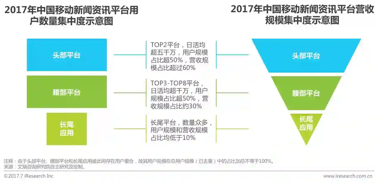 1. 2016年移动新闻资讯市场规模达到161.6亿元,增速超过150%,其中,头部和腰部平台营收占比超过90%。信息流广告和垂直服务开发将成为行业变现重点。