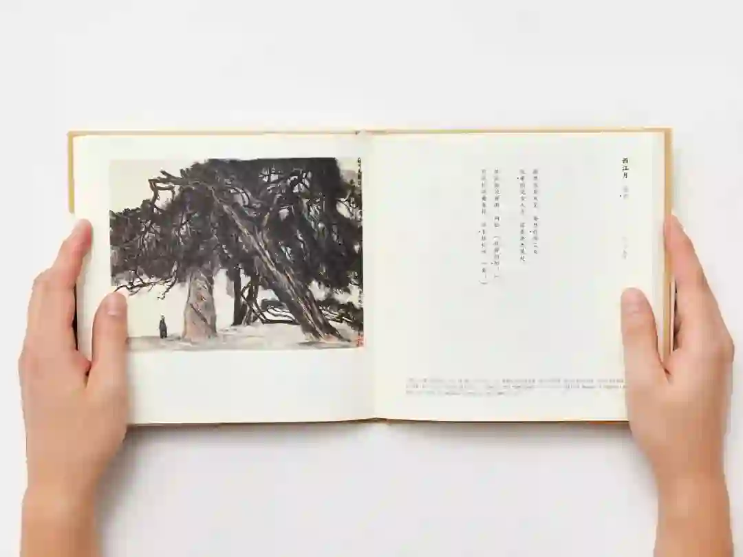 李可染的山水画重视意象的凝聚,将光引入画面,尤其善于表现山林晨夕间的逆光效果,使作品具有一种朦胧迷茫、流光徘徊的特色。搭配气势恢宏的豪放词,非常合适。