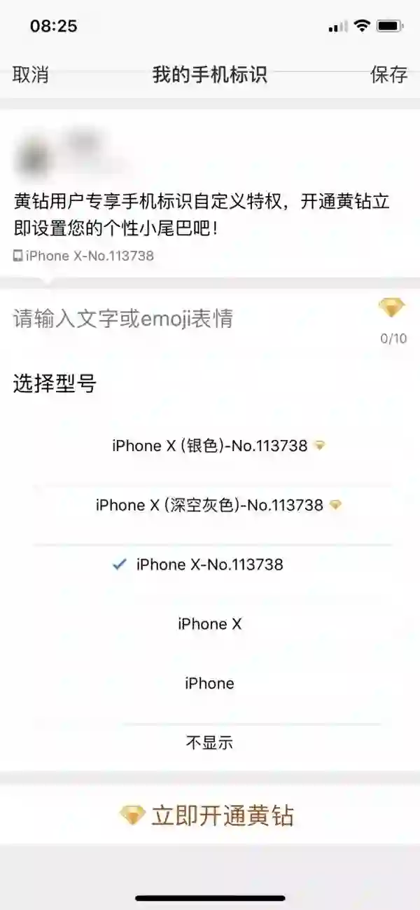 当然,和以往类似功能一样,要使用这一全新小尾巴,同时选择颜色版本的话,需要开通黄钻,没开通的话只能显示iPhone X和数字,无法显示颜色。