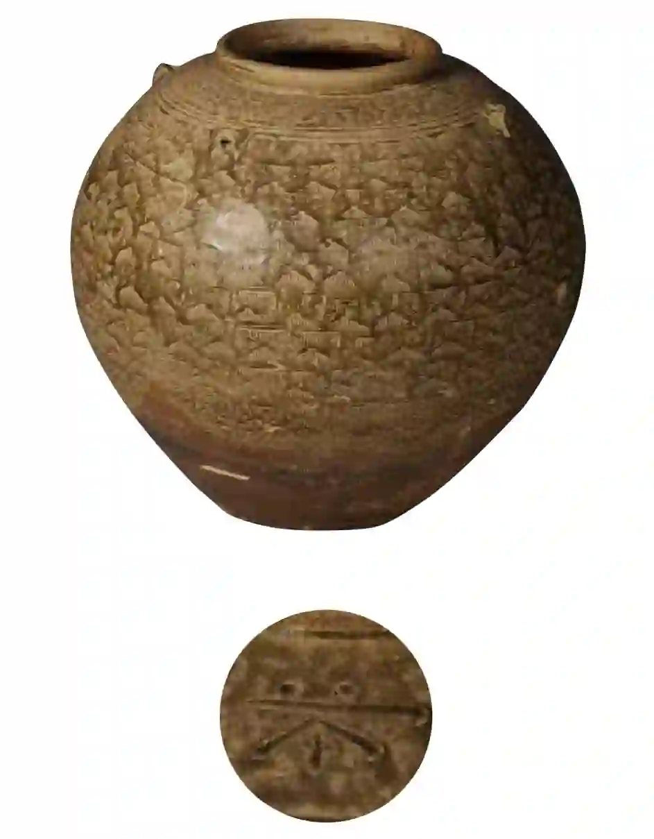 东汉末至三国 四系印纹“茶”字青瓷罍 湖州博物馆藏