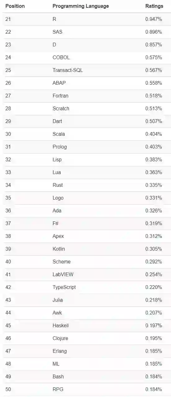 Top 21-50 编程语言排行