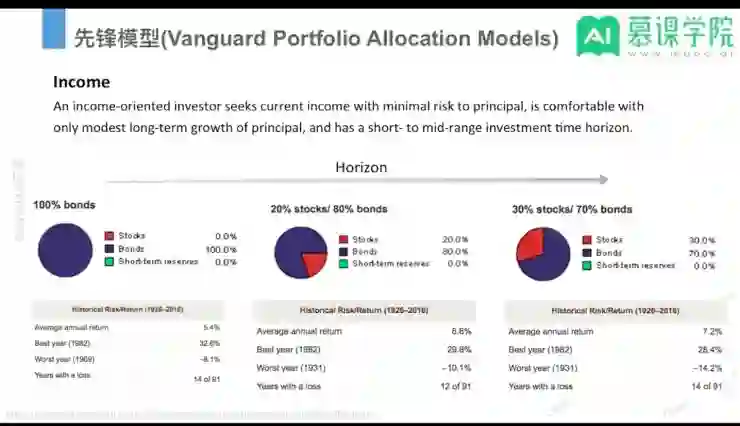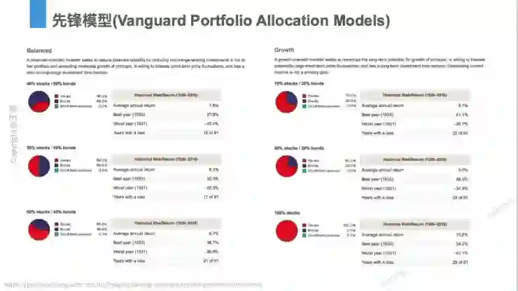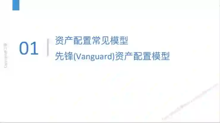 今天我们会讲两个模型,第一个模型是美国也是世界第二大资产管理公司—先锋(Vanguard)所使用的资产配置模型。先锋在2016年介入智能投顾行业这个领域,它们的资产配置模型其实是对外采购的,我们先来看看这个资产配置模型的投资逻辑: