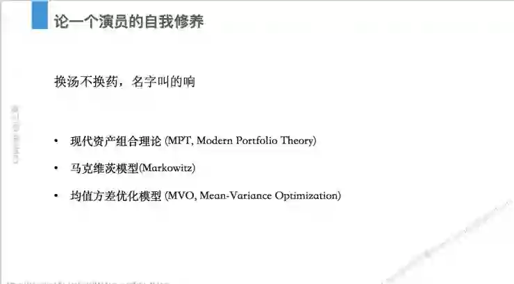 我们讲的MPV,Markowitz,还是MVO,其实它们都是基于同一套的理论,只不过不同的人出于不同的习惯有不同的称呼而已。我们接下来就会详细地来讲讲,马克维茨模型的的原理是什么,它是如何去进行资产配置的,又是如何去融合不同的用户风险等级的。