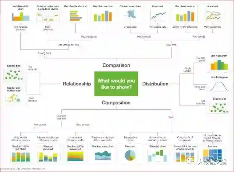 首先,请大家看看这张大的地图,它能指引你根据不同情况,选择正确的可视化方法: