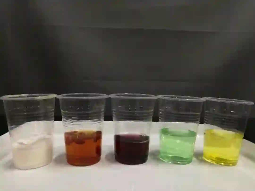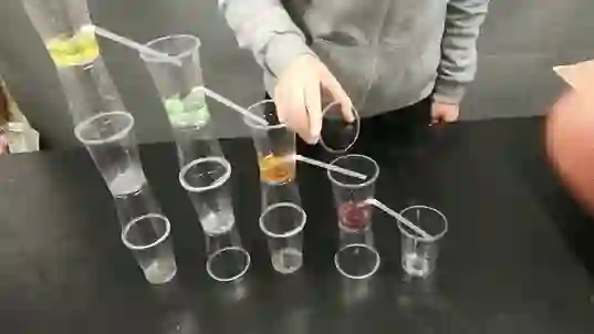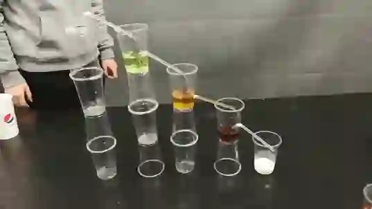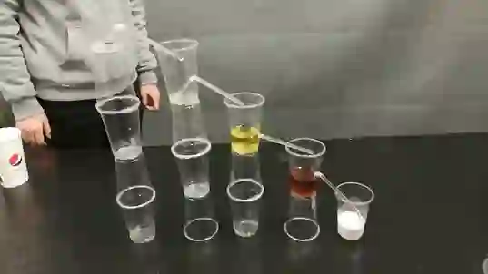 依次倒入各个塑料杯中
