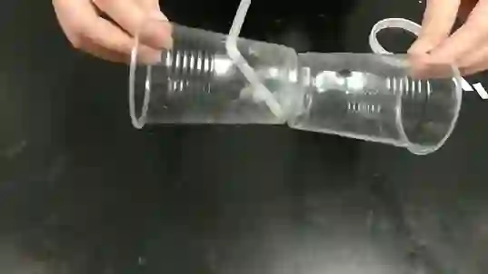 现在将两个杯子用双面胶连接好