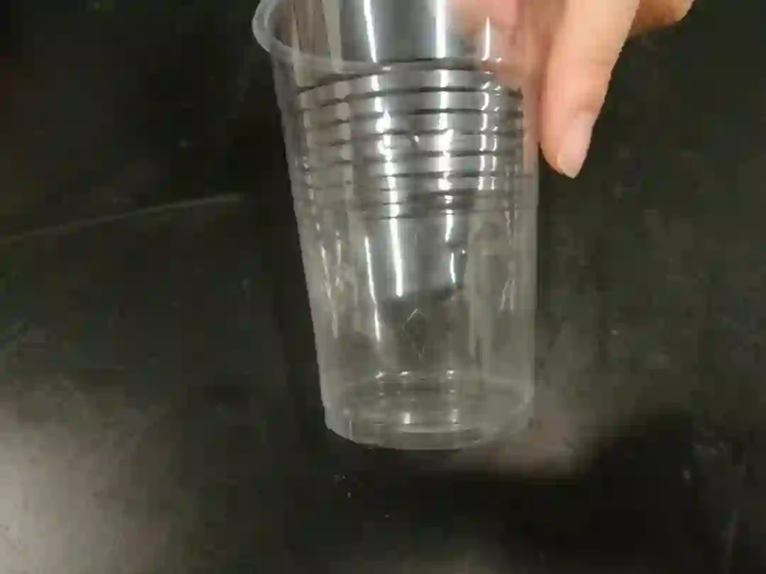 先拿起一个准备好的塑料杯