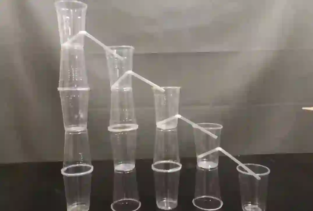 每座”杯塔“之间用吸管连接